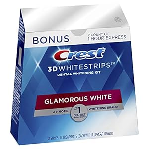 Crest 3D Whitestrips Glamorous White, Teeth Whitening Kit, 16 Treatments (32 Individual Strips) + 2 Bonus 1-Hour Express Treatments