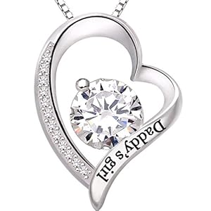 ALOV Jewelry Sterling Silver Father Daughter Love Heart Cubic Zirconia Pendant Necklace